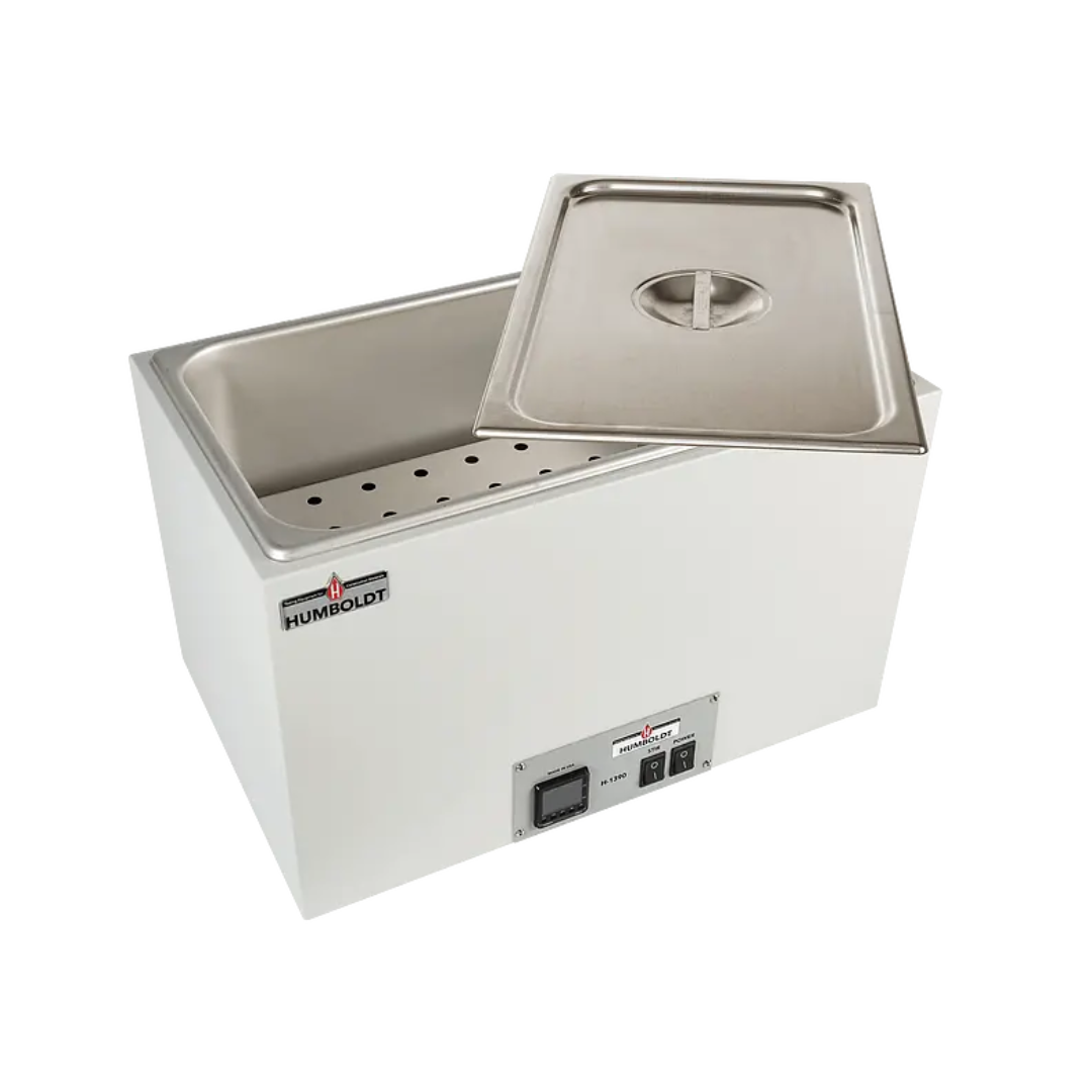 Los baños de agua Humboldt incorporan un controlador digital basado en microprocesador para un control preciso de la temperatura en todo su rango, desde la temperatura ambiente hasta los 82 °C (180 °F), con una precisión de +/-0,1 % del rango de entrada. La pantalla digital dual muestra simultáneamente la temperatura de consigna y la temperatura del proceso de un vistazo.